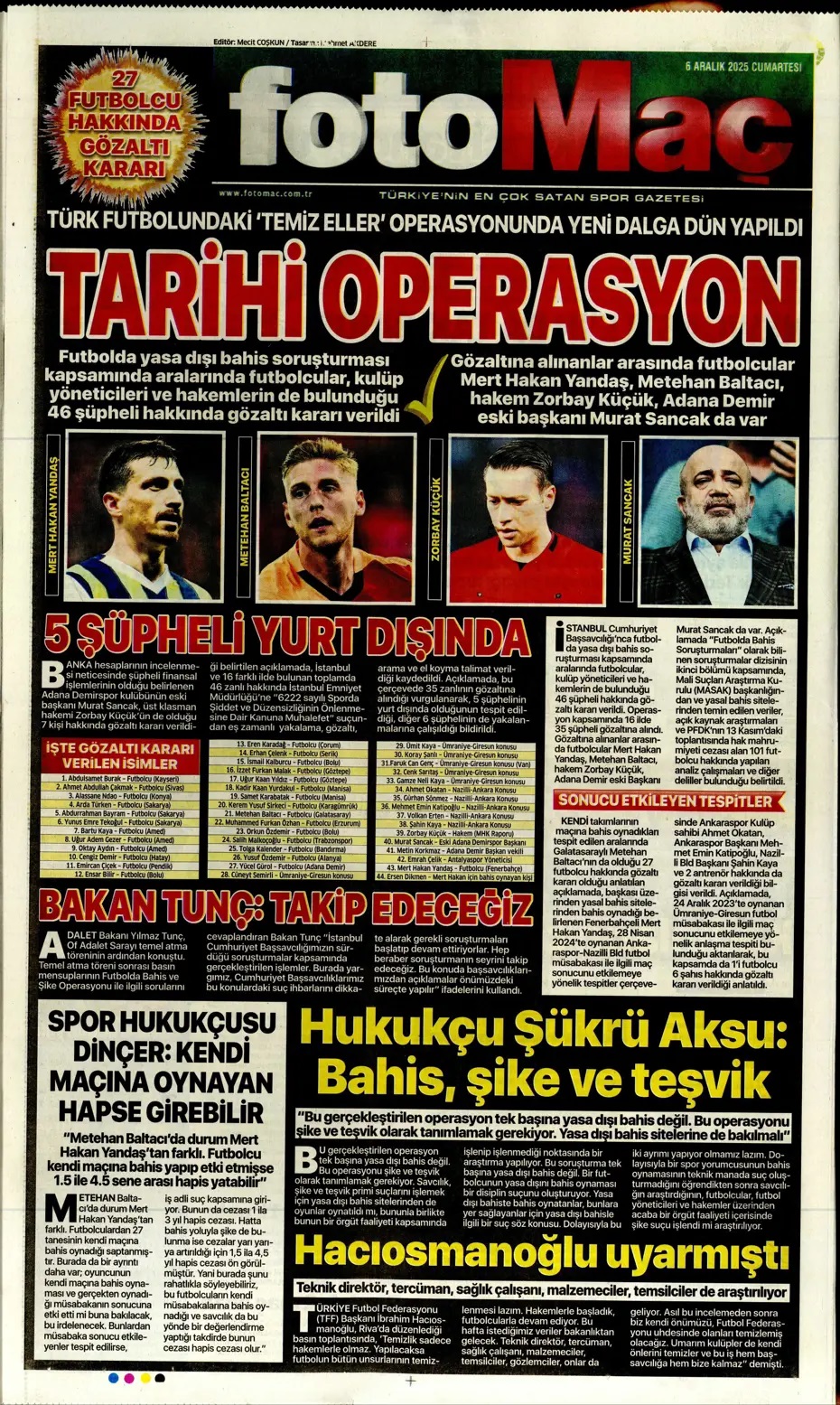 Tabutta röveşata! Spor basını bugün ne yazdı? (6 Aralık)