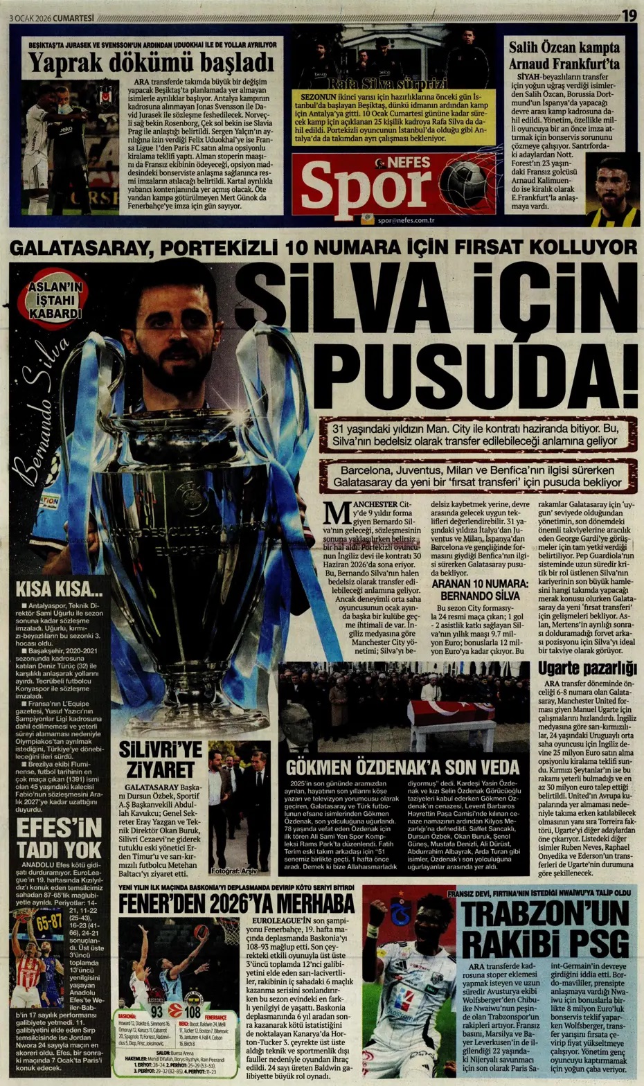 Talisca Fener'e indirim yaptı! Spor basını bugün ne yazdı? (3 Ocak)
