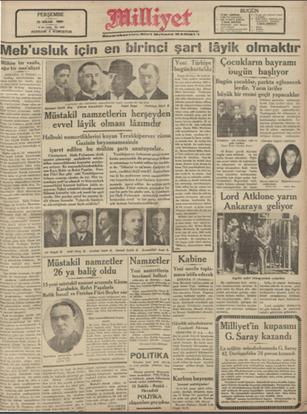 Gazeteler bugün ne yazdı? (23 Nisan)