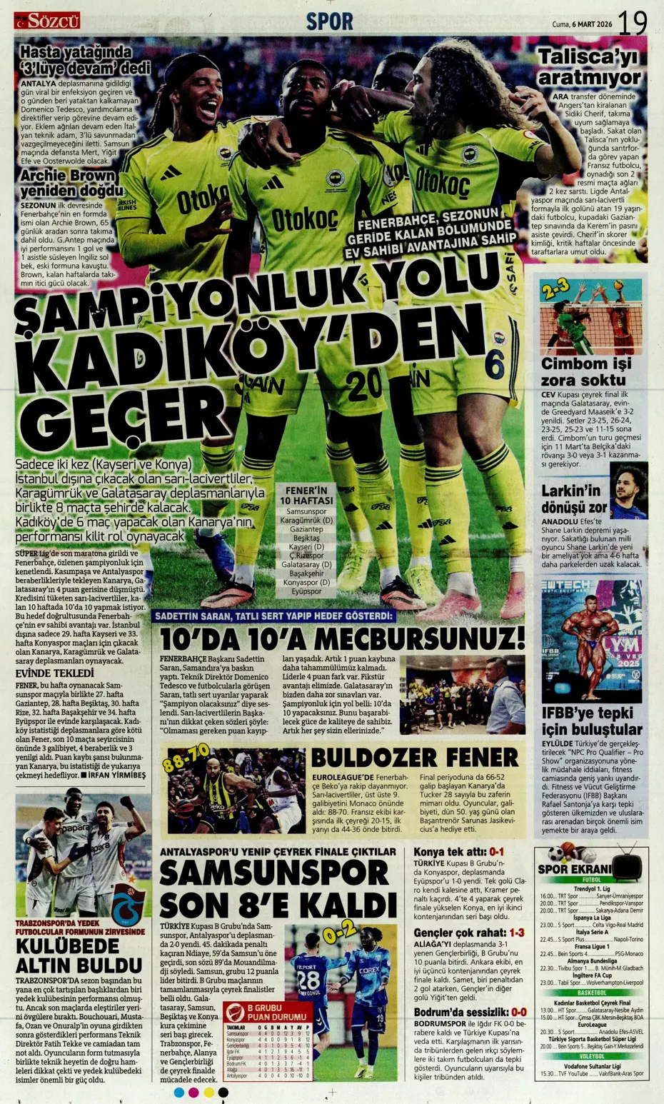 Fenerbahçe resitali! Spor basını bugün ne yazdı? (5 Mart)