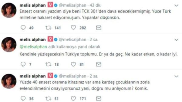 Tepkiler sonrası Twitter hesabından açıklama yapan Alphan, "Ensest oranını yazdım diye beni TCK 301'den dava edeceklermişmiş. Yüce Türk milletine hakaret ediyormuşum. Yapanlar düşünsün" dedi. Alphan'ın açıklaması şöyle: