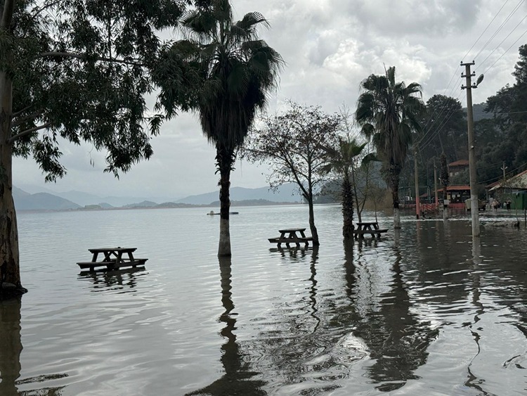Köyceğiz ilçesinde etkili olan yağışların ardından su seviyesi yükselen Köyceğiz Gölü'nün kuvvetli lodosla taşması sonucu bölgede şifa kaynağı olarak bilinen Sultaniye Kaplıcaları ve çamur banyoları sular altında kaldı.