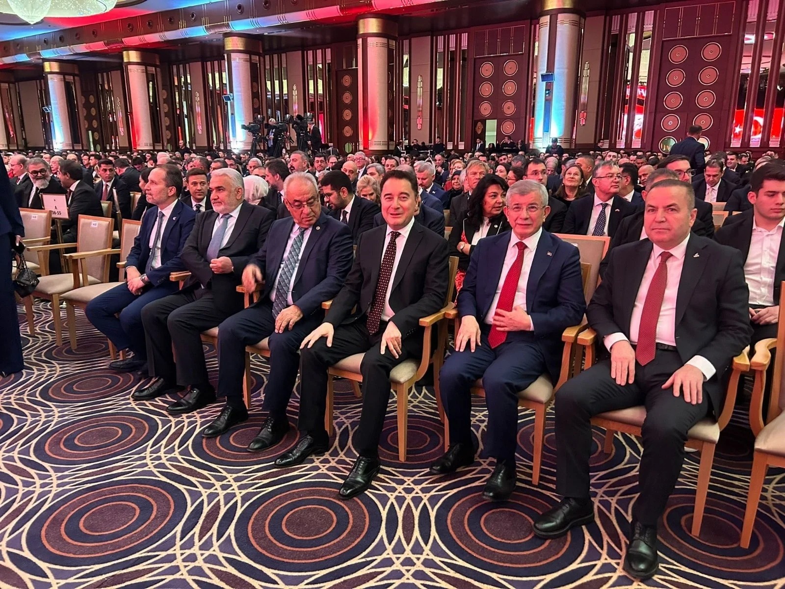 İttifak söylentilierinin merkezinde yer alan DEVA Partisi ve Gelecek Partisi genel başkanları Ali Babacan ile Ahmet Davutoğlu, resepsiyondaki yerini aldı.