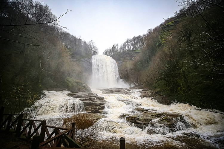 Granit metamorfik kayalar üzerinden 38 metre yükseklikten akan şelale, çevresindeki güzelliklerle beraber sesi ve görüntüsüyle misafirlerine manzaralar sunuyor.