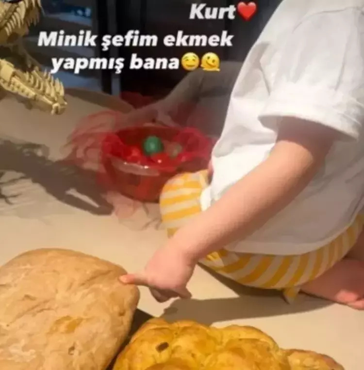 Daha önce oğlunun yemek hazırladığı o anları paylaşan Başak Dizer, bugün de minik oğlunun ekmek hazırladığı o anları takipçileriyle paylaştı. O eğlenceli anlar, takipçileri güldürdü.