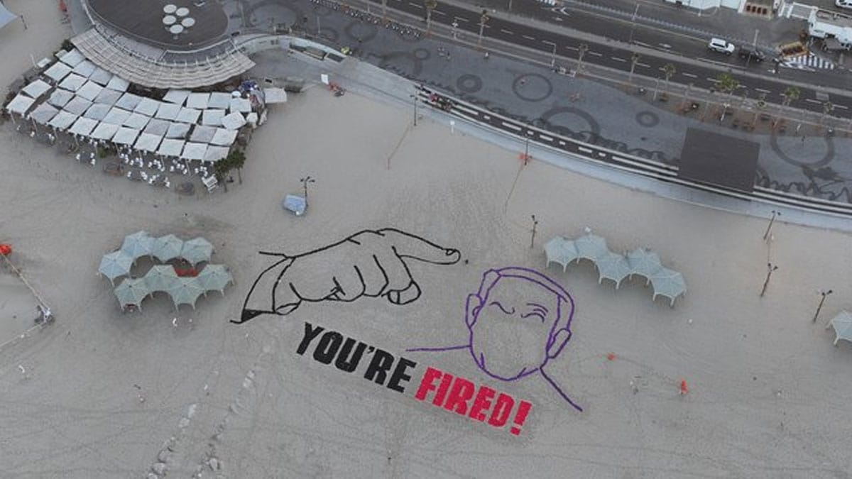 Aktivistler, İsrail Başbakanı Binyamin Netanyahu’yu protesto ederek İngilizce "Kovuldun" ifadesinin yer aldığı bir çizim yaptı.