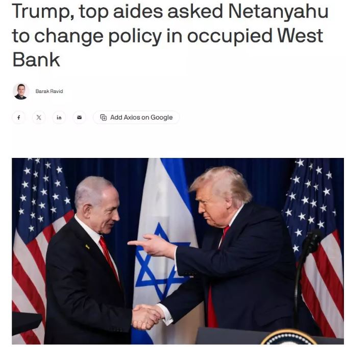 Axios internet sitesine konuşan ve görüşmeye aşina yetkililere göre, Trump yönetimi Batı Şeria’da artan gerilimin, Gazze’de varılan ateşkes anlaşmasının uygulanmasını zorlaştıracağı değerlendirmesini yaptı.