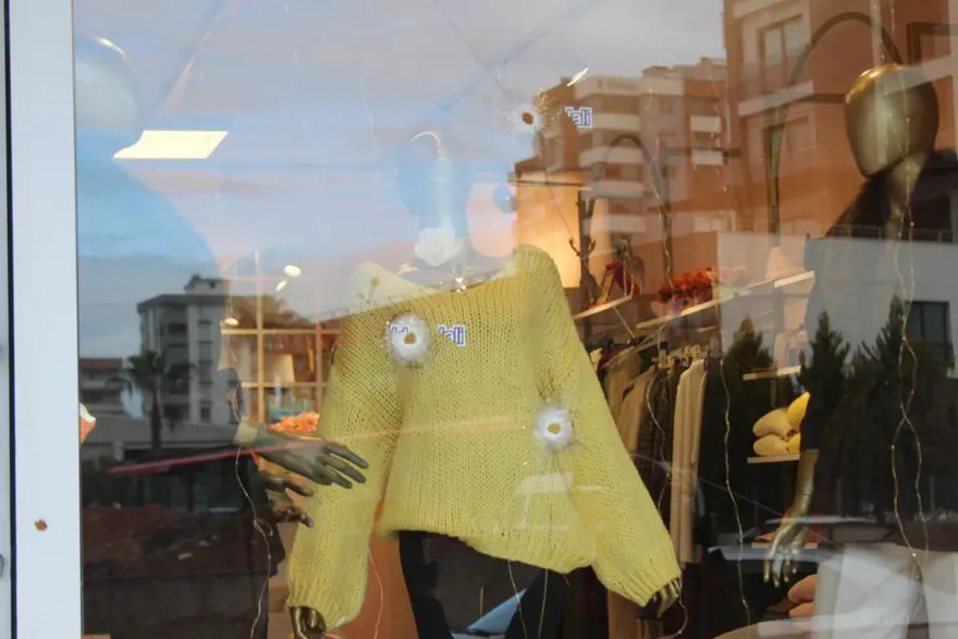 Kurşunlar vitrin camını delerek iş yerinin duvarlarına isabet etti.