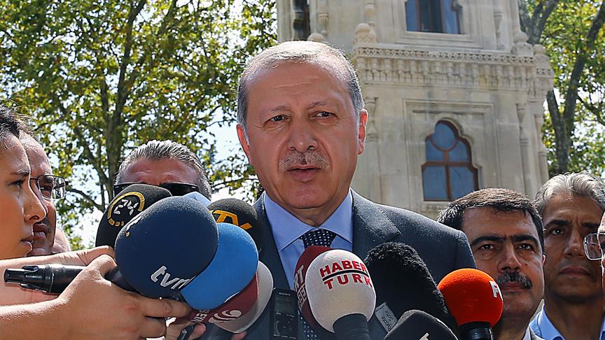Cumhurbaşkanı Recep Tayyip Erdoğan, cuma namazını Yıldız Hamidiye Camisi'nde kıldı. Erdoğan'a Başbakan Yardımcısı Bekir Bozdağ, İstanbul Valisi Vasip Şahin, Büyükşehir Belediye Başkanı Kadir Topbaş, Emniyet Müdürü Mustafa Çalışkan ile AK Parti İstanbul İl Başkanı Selim Temurci de eşlik etti."Baş sorumlusu Almanya'nın ta kendisidir"