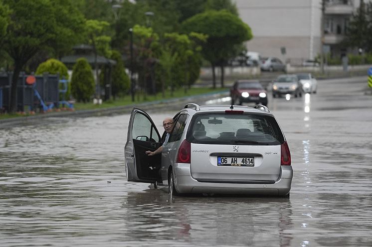 Ayaş yolu da yoğun yağış sebebiyle geçici olarak trafiğe kapatıldı. Çok sayıda araç sürücüsü, ekiplerin suyu tahliye etmesini bekledi. Bu arada yolda kalan bazı araçlar, iş makineleri ve forkliftlerle suyun olmadığı alanlara çekildi.