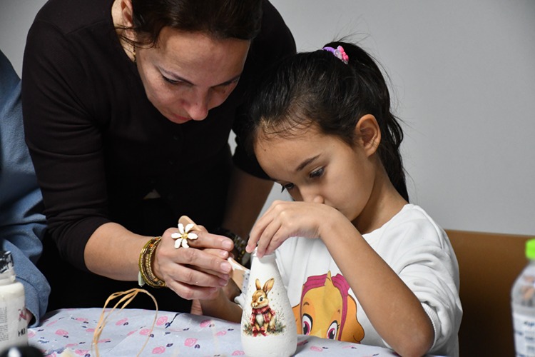 Çocukların el becerilerinin geliştirilmesi ve çevre bilinci kazanmalarına katkı sağlamak amacıyla düzenlenen program kapsamında öğrencilere eğitmen Vildan Poyraz Coşkun tarafından eğitim veriliyor.