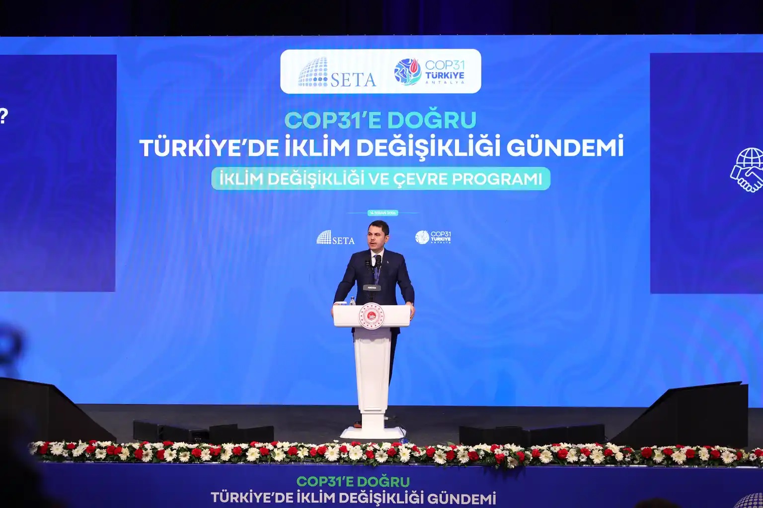 COP31 Başkanı ve Çevre, Şehircilik ve İklim Değişikliği Bakanı Murat Kurum, SETA tarafından Ankara’da düzenlenen "COP31’e Doğru Türkiye’de İklim Değişikliği Gündemi: İklim Değişikliği ve Çevre Programı" başlıklı konferansa katıldı.