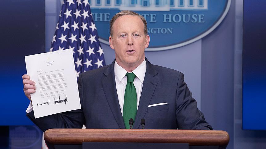 Trump'ın, seçim kampanyası sürecinde dönemin ABD Başkanı Barack Obama tarafından New York'taki Trump Tower'ın dinlettirildiği iddiasının arkasında duran Spicer, kısa süre sonra delillerin kamuoyuna yansıtılacağı değerlendirmesini yaptı.
