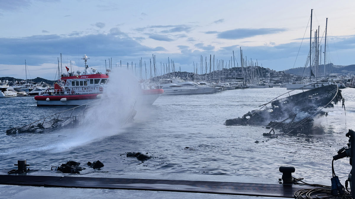 Yalıkavak Mahallesi'ndeki marinada demirli motoryatta henüz belirlenemeyen nedenle yangın çıktı.