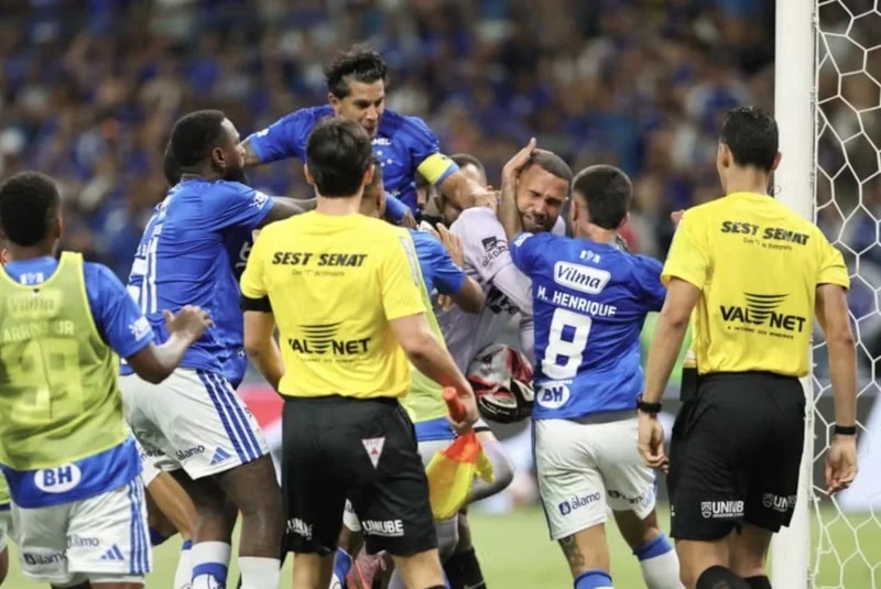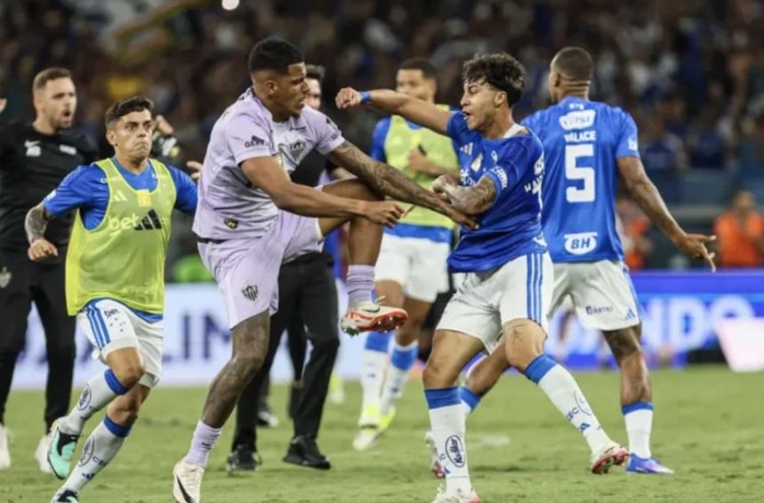 Karşılaşmanın son bölümünde Atletico Mineiro kalecisi Everson ile Cruzeiro oyuncusu Christian arasındaki ikili mücadele sonrası tansiyon bir anda yükseldi.