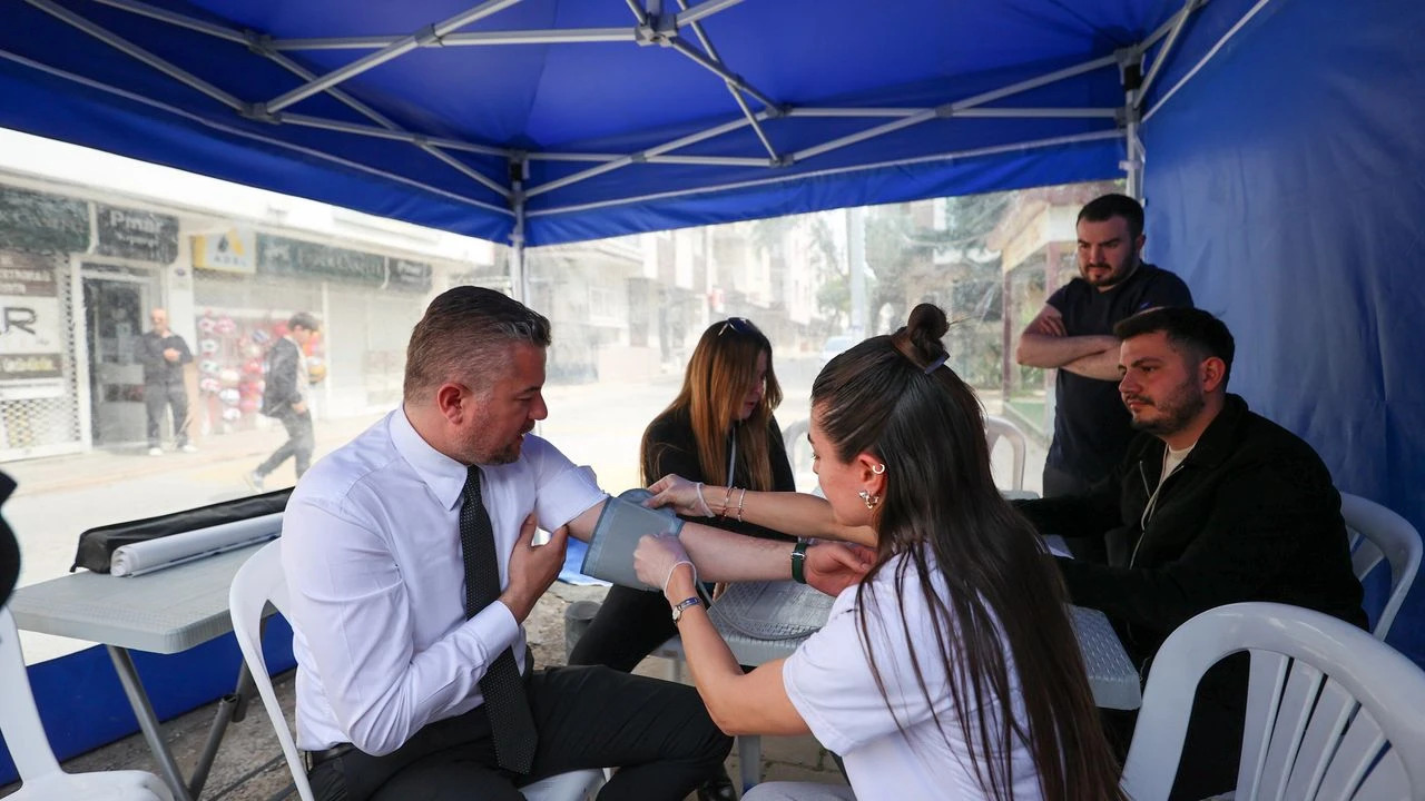 Buca Belediyesi, ilçe sakinlerinin yaşam kalitesini artırmak ve koruyucu sağlık hizmetlerini erişilebilir kılmak amacıyla başlattığı “Köşe Bucak Sağlık” projesine hız kesmeden devam ediyor. Her hafta farklı bir mahalleye konuk olan mobil sağlık ekiplerinin son durağı Akıncılar Mahallesi Muhtarlığı oldu. Vatandaşların büyük ilgi gösterdiği etkinlikte, ücretsiz şeker ve tansiyon ölçümleri gerçekleştirilirken, uzman ekip tarafından vatandaşlara genel sağlık durumuna yönelik bilgilendirmeler yapıldı. Akıncılar Mahallesi’ndeki çalışmaları yerinde inceleyen Buca Belediye Başkanı Görkem Duman, mahalle sakinleriyle bir araya gelerek taleplerini dinledi. Sağlık taramasının önemine dikkat çeken Başkan Görkem Duman, kendisi de sıraya girerek tansiyon ölçümü yaptırdı.