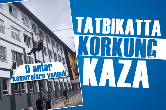 Deprem tatbikatı için liseye gelen AFAD görevlisi, 3. katta bağlı olduğu halatta makaranın açılması sonuçu metrelerce yüksekten düştü.