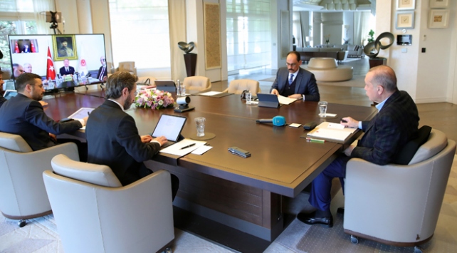 Cumhurbaşkanı Recep Tayyip Erdoğan, Cumhurbaşkanlığı Kabine üyeleriyle video konferans yöntemiyle görüştü.