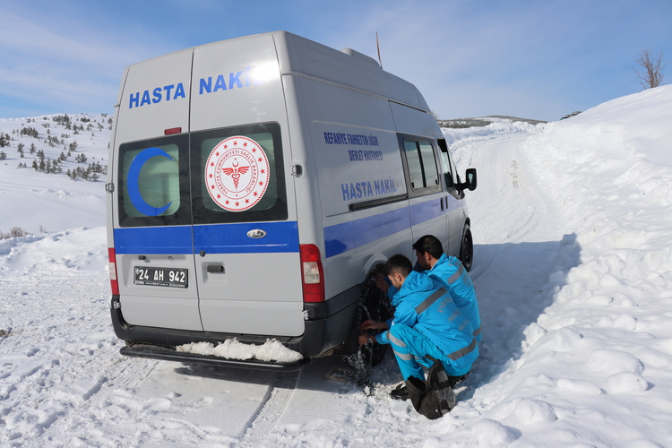Kışın çetin geçtiği Refahiye ilçesine yaklaşık 25 kilometre uzaklıktaki Gümüşakar köyünde yaşayan Şeftalioğlu ailesinin evine karlı yolları aşarak ulaşan sağlık ekipleri, kısmi felçli Sakine Şeftalioğlu'nun (88) muayenesini yapıp tedavisine yönelik kontrolleri gerçekleştirdi.