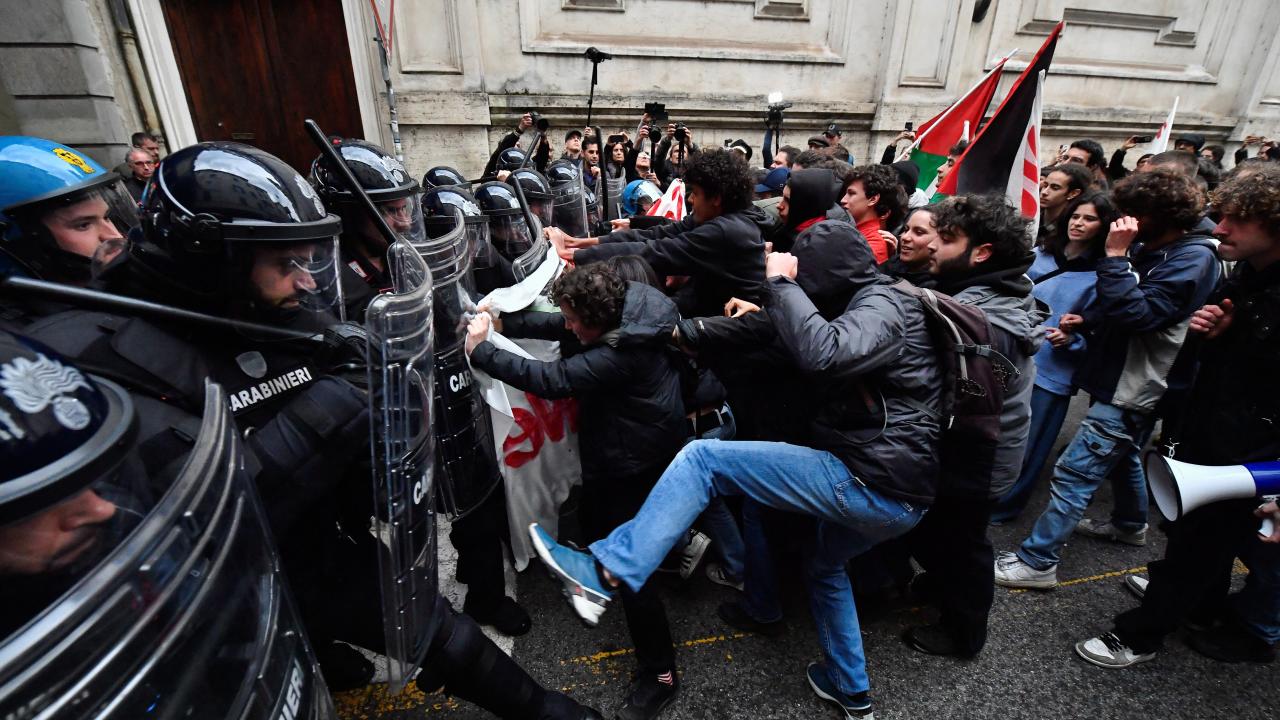 İtalyan basınında yer alan haberlere göre, konuk bakanlar onuruna verilecek akşam yemeği öncesi kentteki Castello Meydanı'na ulaşmak isteyen protestoculara, güvenlik güçleri engel oldu.