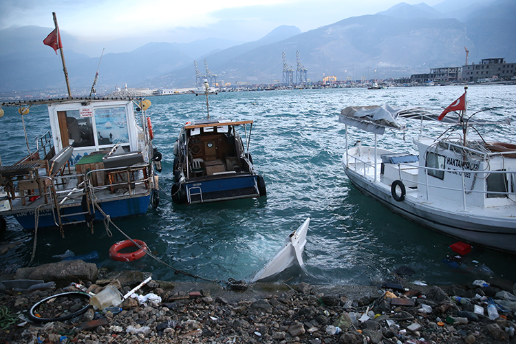 İskenderun ilçesinde de fırtına nedeniyle 6 tekne ve 1 yat alabora oldu.