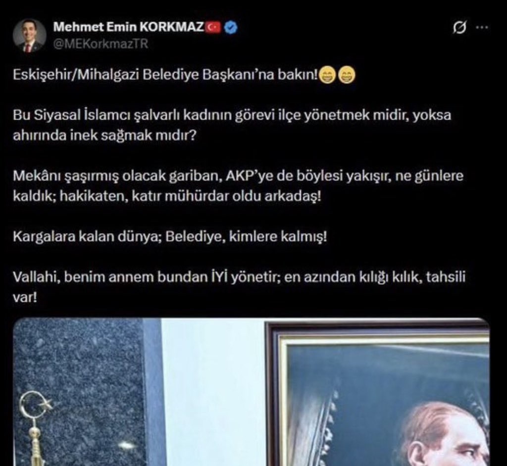 Mihalgazi Belediye Başkanı Zeynep Güneş’i kıyafeti üzerinden hedef alan sosyal medya paylaşımları nedeniyle gündeme gelen İYİ Parti üyesi Mehmet Emin Korkmaz, partisinden ihraç edildi. Kararı İYİ Parti Sözcüsü Buğra Kavuncu açıkladı.