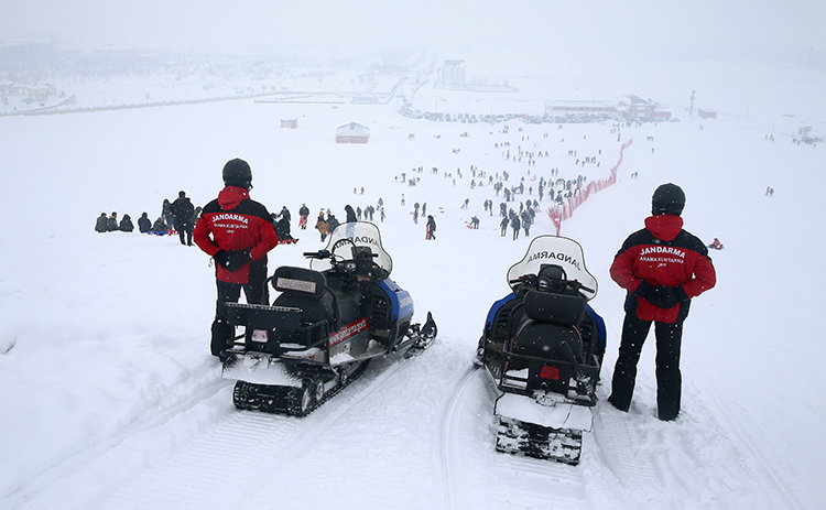 Kış sezonu boyunca olası kaybolma, yaralanma, mahsur kalma ve çığ risklerine karşı insanların güvenliğini sağlamaya çalışan JAK timi, merkezde sürekli devriye gezerek kayakseverleri dikkatli olmaları konusunda uyarıyor.