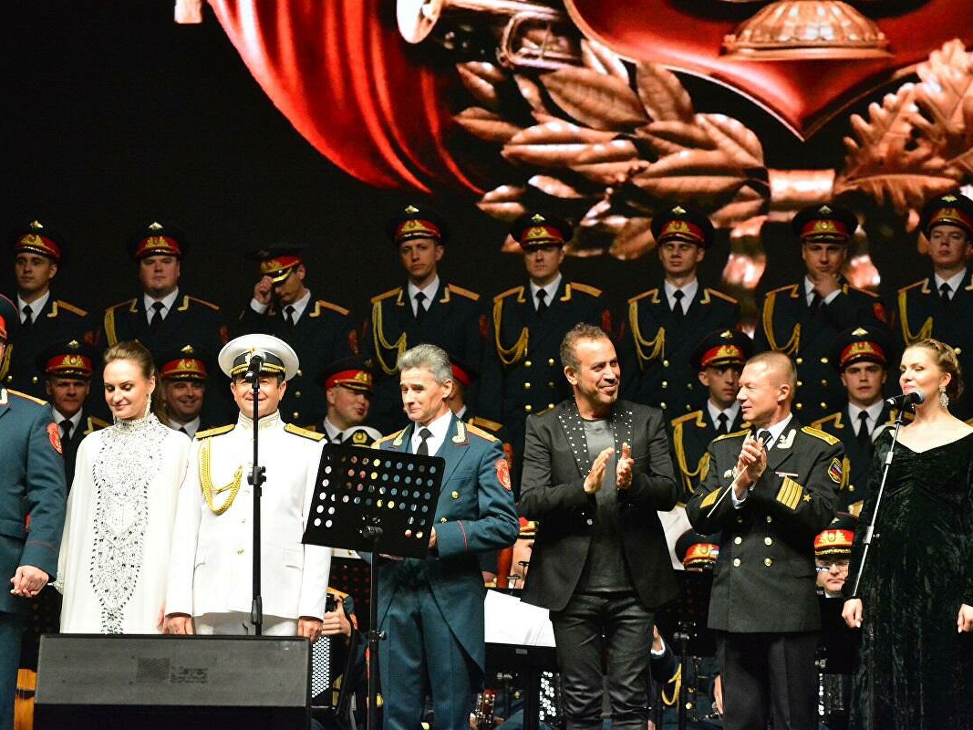 Rus Kızılordusu ile konser veren ilk Türk sanatçı olan Haluk Levent, arkasındaki dev orkestra ile birlikte İzmir Marşı'ndan Çanakkale Türküsü'ne kadar birçok şarkıyı seslendirdi.
