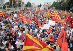 "Makedonya İçin" sloganıyla düzenlenen protestoda konuşan ana muhalefetteki Makedonya Sosyal Demokratlar Birliği (SDSM) Genel Başkanı Zoran Zaev, Makedonya'nın önünde tek bir yol olduğunu, bu yolun AB yolu olduğunu söyledi.
