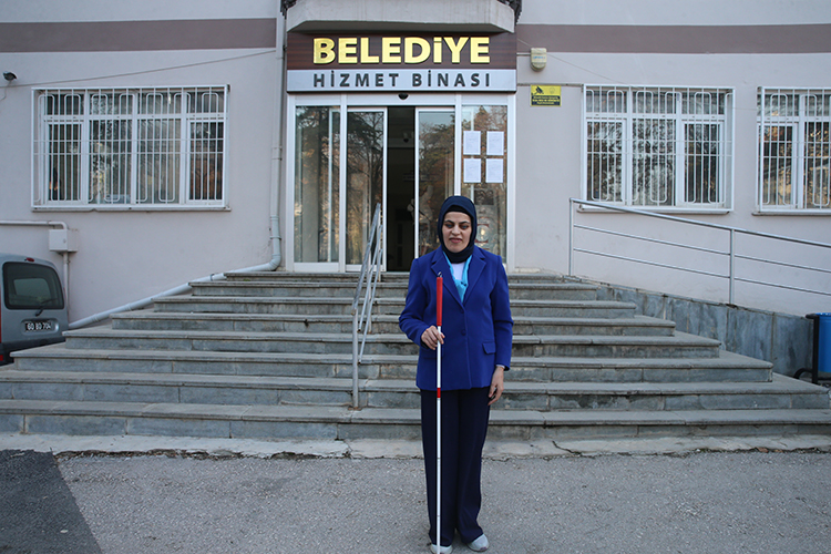 Belediyede iki hafta önce santral görevlisi olarak çalışmaya başlayan 36 yaşındaki doğuştan görme engelli Kaytazoğlu'nun en büyük yardımcıları mesai arkadaşları oldu.