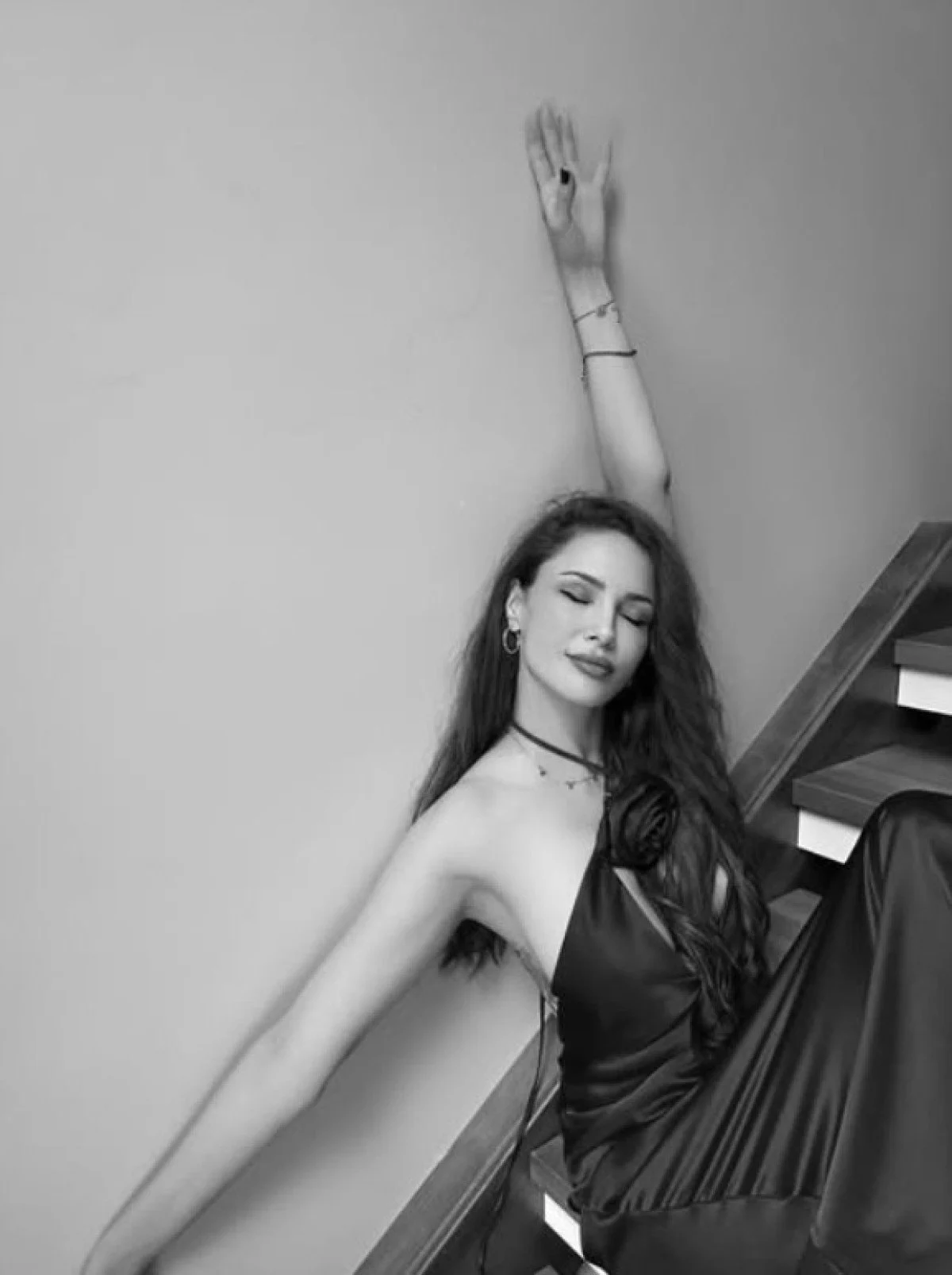 Başarılı oyuncu bu sefer de merdivenlerde poz verdi. İddialı göğüs dekoltesini saçlarıyla kapatan Tugay'a fanlarından beğeni ve kalp emojisi yağdı.