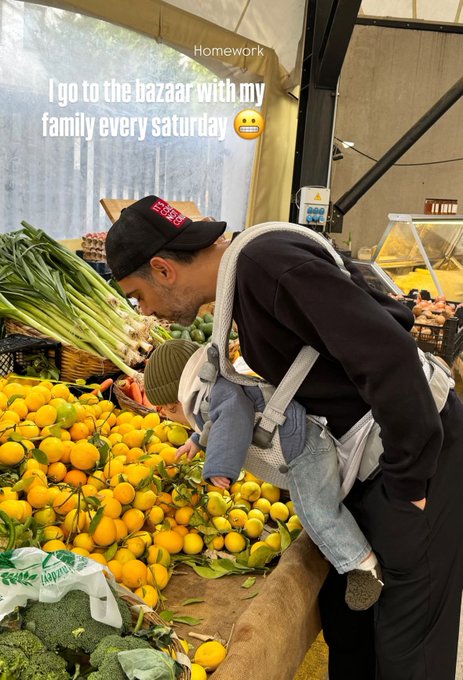 Alışveriş yapan Neslihan Atagül, eşi Kadir Doğulu ve oğlu Aziz'i bir tezgahta çektiği fotoğrafı "Her cumartesi ailemle birlikte pazara giderim" notuyla sosyal medyada paylaştı.
