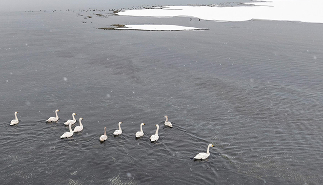 Kışın daha sert geçtiği bölgelerden gelerek Van ve Erçek gölleri çevresindeki sulak alanları mekan tutan çok sayıda ötücü kuğu, havalar ısınıncaya kadar bölgede konakladıktan sonra dönüş yolculuğuna başlıyor.