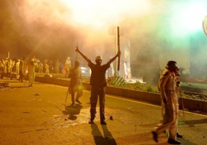 Pakistan Halk Hareketi (PAT) ve Pakistan Adalet Hareketi taraftarlarının 14 Ağustos'tan bu yana barışçıl devam ettirdikleri protestolarda çatışma yaşandı. PAT lideri Tahir-ul Kadri'nin taraftarlarına Başbakanlık Ofisi'ne doğru ilerlemeleri çağrısı yapmasının ardından göstericiler, cumhurbaşkanlığı binası yanındaki sokağın başında bulunan konteynırları kaldırmak üzere harekete geçti.