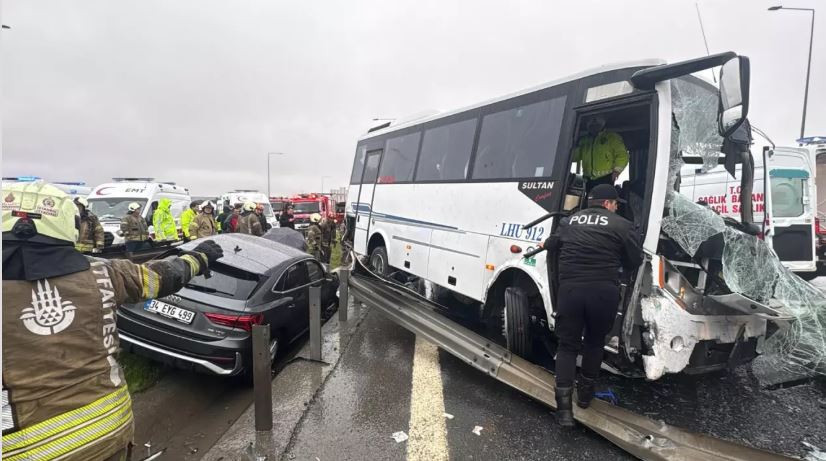 Başakşehir, Kuzey Marmara Otoyolu Fenertepe mevkiinde sabah saatlerinde polisleri taşıyan servis aracının da aralarında olduğu zincirleme kaza meydana geldi.