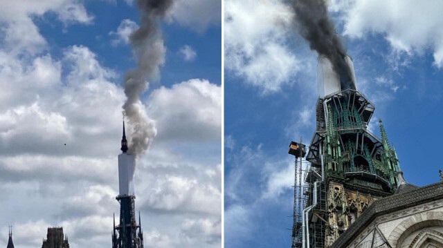 Rouen Katedralinde yangın! Tarihi katedralden dumanlar yükseliyor