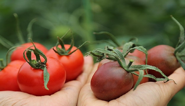 Dolmalık domates, 7 metre boyunda, normal bir fideden daha fazla verim alınabilen domates türlerini geliştiren ziraat mühendisi Büşra Yapıcı, yaklaşık 4 yıl önce Rus firmaların talebi üzerine uzun ömürlü, aroması iyi mor domates üzerinde çalışmaya başladı.