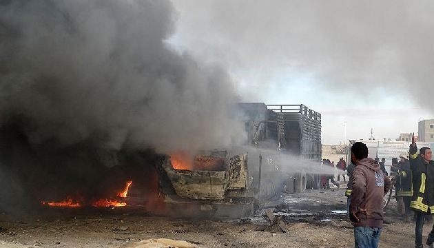 Suriye'de Halep'in kuzeyinde bulunan Azez ilçesindeki göçmenlere giden yardım tırlarının bulunduğu bölgeye düzenlenen hava saldırısında tırların isabet alması sonucu 7 kişinin öldüğü, 10 kişinin yaralandığı, 20 tırın yandığı bildirildi.