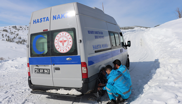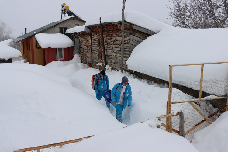 Kışın çetin geçtiği Refahiye ilçesine yaklaşık 25 kilometre uzaklıktaki Gümüşakar köyünde yaşayan Şeftalioğlu ailesinin evine karlı yolları aşarak ulaşan sağlık ekipleri, kısmi felçli Sakine Şeftalioğlu'nun (88) muayenesini yapıp tedavisine yönelik kontrolleri gerçekleştirdi.