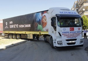 Türkiye Diyanet Vakfı (TDV) tarafından İzmir Müftülüğü'nün koordinesinde hayırsever iş adamlarından toplanan gıda ve temizlik malzemelerinden oluşan yardım tırlarından 5'i Halep'te, 7'si ise Azez'de dağıtılmaya başlandı.