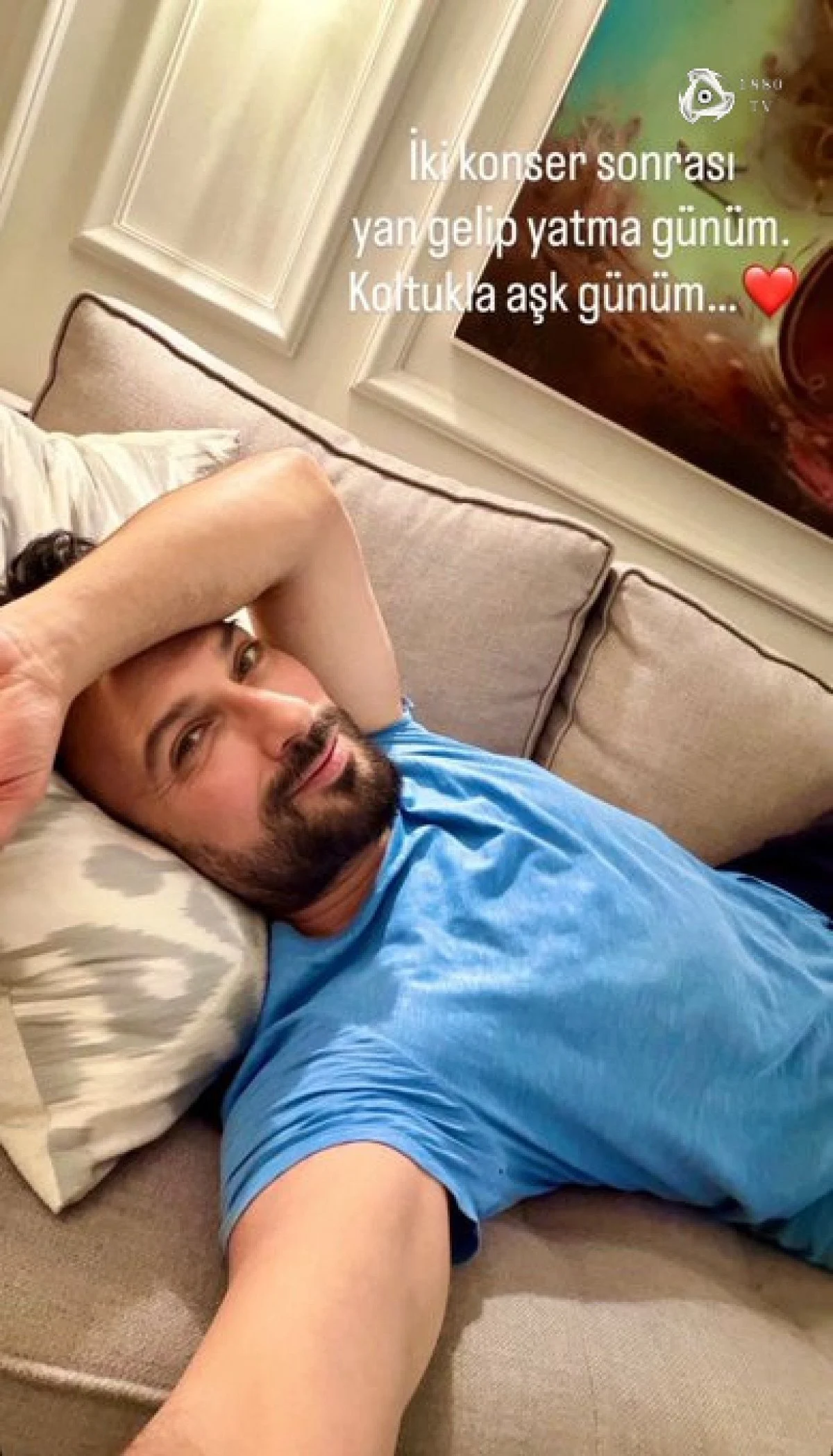 İstanbul'da verdiği iki konserin ardından Tarkan, "İki konser sonrası yan gelip yatma günüm. Koltukla aşk günüm." paylaşımını yaptı.