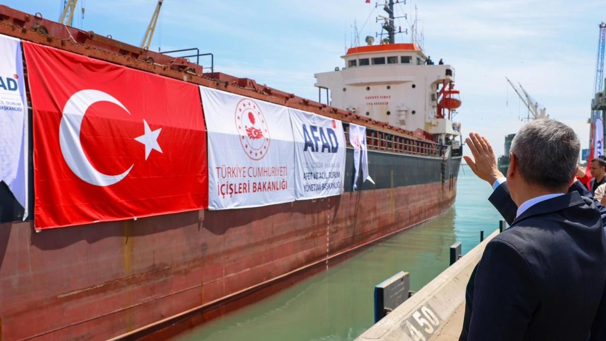 AFAD ve Türk Kızılay katkılarıyla hazırlanan 730 tonluk insani yardım malzemesini taşıyan gemi, Beyrut Limanı'na yanaştı.