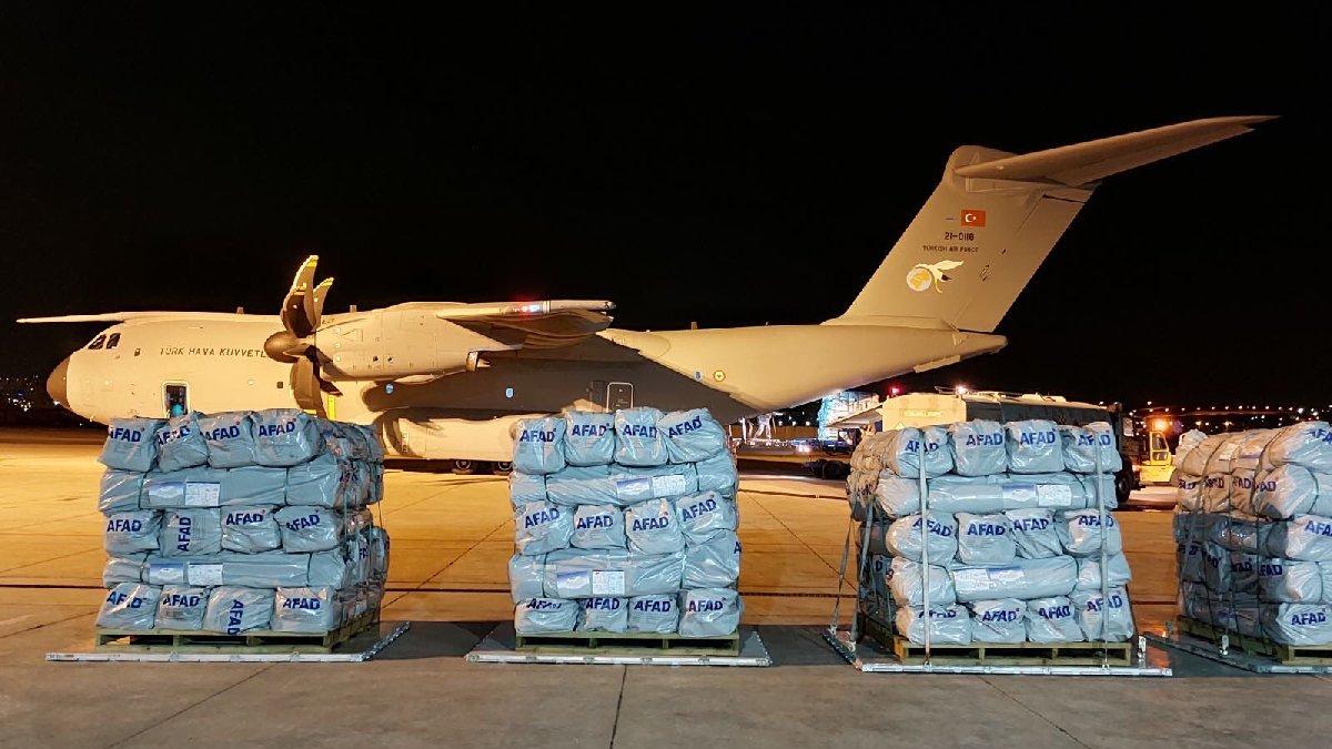 Milli Savunma Bakanlığı'nın sosyal medya hesabından yapılan paylaşımda, "Sel felaketlerinde zarar gören Pakistanlı kardeşlerimiz için insani yardım malzemeleri taşıyan uçaklarımız Pakistan’a ulaştı. Bir kez daha hayatını kaybeden kardeşlerimize Allah’tan rahmet, Pakistan halkına başsağlığı, yaralılara da acil şifalar diliyoruz" ifadelerini kullandı.