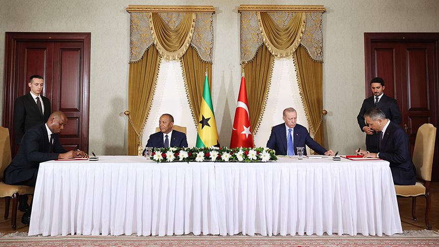 Cumhurbaşkanı Erdoğan ile Başbakan Trovoada huzurundaki törende, güvenlik ve kolluk eğitimi ile enerji işbirliği alanlarında iki anlaşma imzalandı.