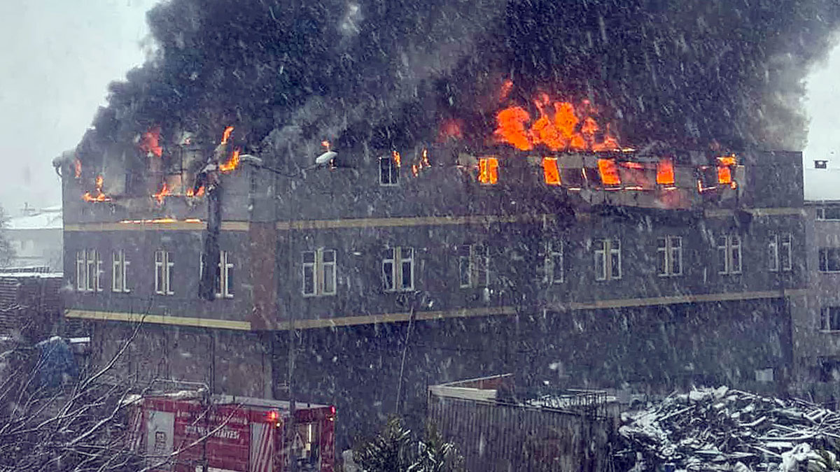 Yangın sırasında yükselen yoğun siyah duman, gökyüzünü kapladı. İtfaiyenin yangını kontrol altına alma çalışmaları sürüyor.