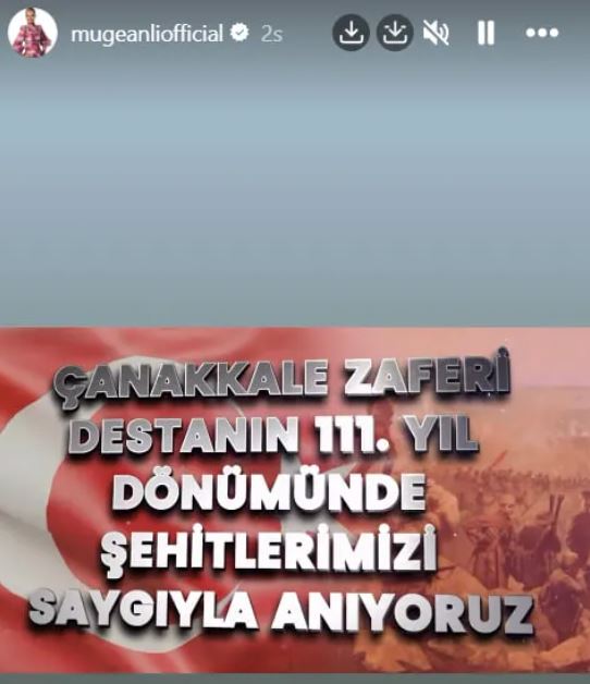 Müge Anlı, "Çanakkale Zaferi Destanının 111. yıl dönümünde şehitlerimizi saygıyla anıyoruz" sözlerini ifade etti.