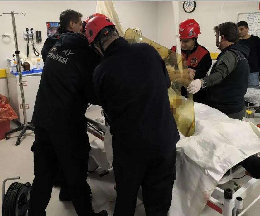 Dörtyol Devlet Hastanesi'nde sağlık çalışanları demiri kendi imkanlarıyla çıkaramayınca şahsın ameliyatına Hatay Büyükşehir Belediyesi itfaiye ekipleri de dahil oldu. Şahsın vücudundaki demir, kendisine zarar vermeden spiralla kesilerek yarım saati bulan çalışmayla çıkarıldı.