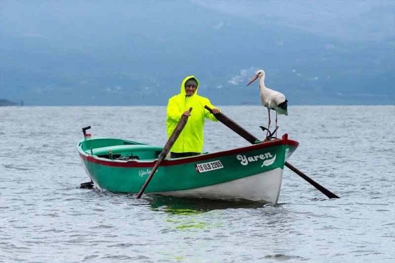 Bursa'nın Karacabey ilçesine bağlı Eskikaraağaç Mahallesi’nde yaşayan balıkçı Adem Yılmaz ile Yaren leylek arasındaki dostluk, dillerden düşmüyor.