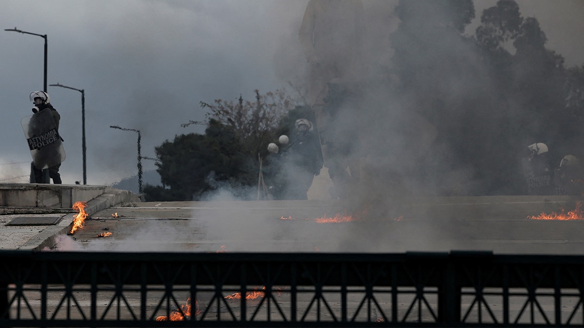 Atina'daki parlamento binası önünde bir grup eylemci ile polis arasında arbede yaşandı.