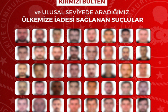 Kırmızı bültenle aranan 18 ve ulusal seviyede aranan 27 kişi olmak üzere ...
